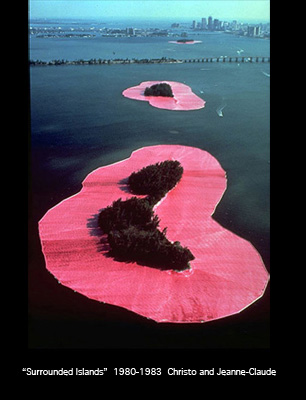 Kristin Jones and Andrew Ginzel make large-scale ephemeral installations in public spaces (left, "Panopia" 2005"). Romantic involvement led to informal sort of collaboration. “We worked not knowing we were a team, but with the consciousness that together we could produce certain kinds of things we could not produce on our own,” Andrew Jones. |